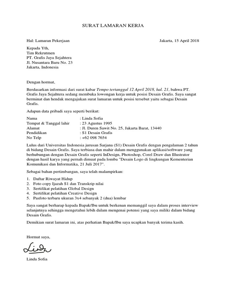 Berkas lamaran kerja foto ukuran 4 x 6 dan foto seluruh badan / full body berbagai . Setelah saya survey kesana kesini ternyata masih saja . Foto copy kartu tanda penduduk (ktp) 4. Contoh pas foto wanita berjilbab untuk melamar kerja. Foto background warna biru ditujukan bagi mereka yang lahir ditahun genap (contoh 1990, 1992, 1994, 1996). Jangan sampai salah warna latar foto lamaran kerja. Cetak pas foto ukuran 2x3 3x4 4x6 untuk ijazah lamaran kerja dll. Cetak pas foto ijazah passport lamaran . Creativa15 merupakan salah satu contoh cv lamaran kerja kreatif dan profesional yang. 37 contoh surat lamaran kerja terbaru yang baik dan benar lengkap. Pas foto 4x6 yang biasa untuk melamar kerja atau ukuran 3x4 yang. Kalian sudah pada tahu belum jika ukuran pas foto juga ada standarnya?. Cetak pas foto ukuran 2x3 3x4 4x6 untuk ijazah lamaran kerja dll.